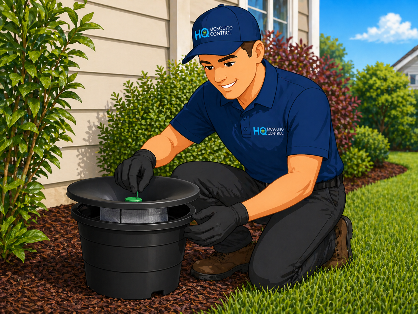 Our In2Care mosquito control service is designed to reduce mosquito populations by targeting the breeding cycle, not just the mosquitoes flying around today. The In2Care station attracts mosquitoes, contaminates them inside the station, and allows them to carry control agents to other nearby breeding sites before they die. The system is EPA-registered for professional use and is designed for container-breeding mosquitoes such as Aedes and Culex.